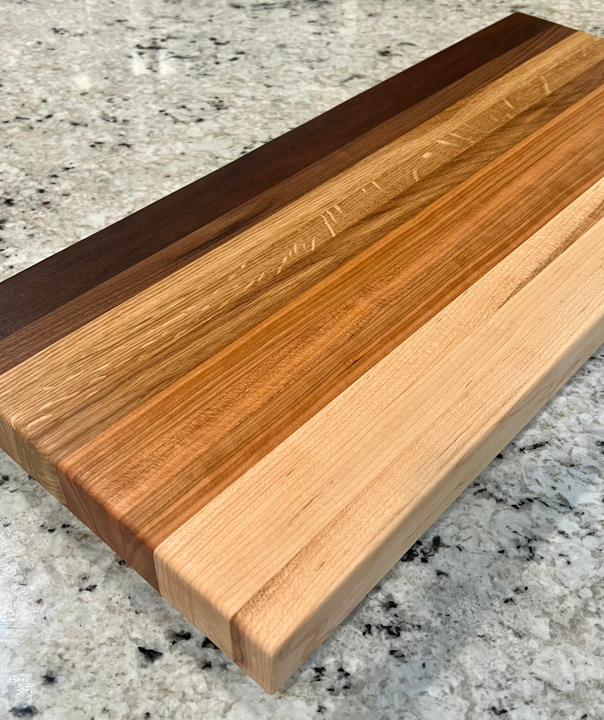 Bring natural warmth and artisan beauty into your kitchen with our handcrafted Ombre Style Butcher Block, a stunning blend of premium hardwoods: Walnut, Oak, Cherry, and Maple. Designed to showcase a seamless gradient of rich, natural tones—from deep chocolate browns to golden creams—this butcher block is as functional as it is visually striking.