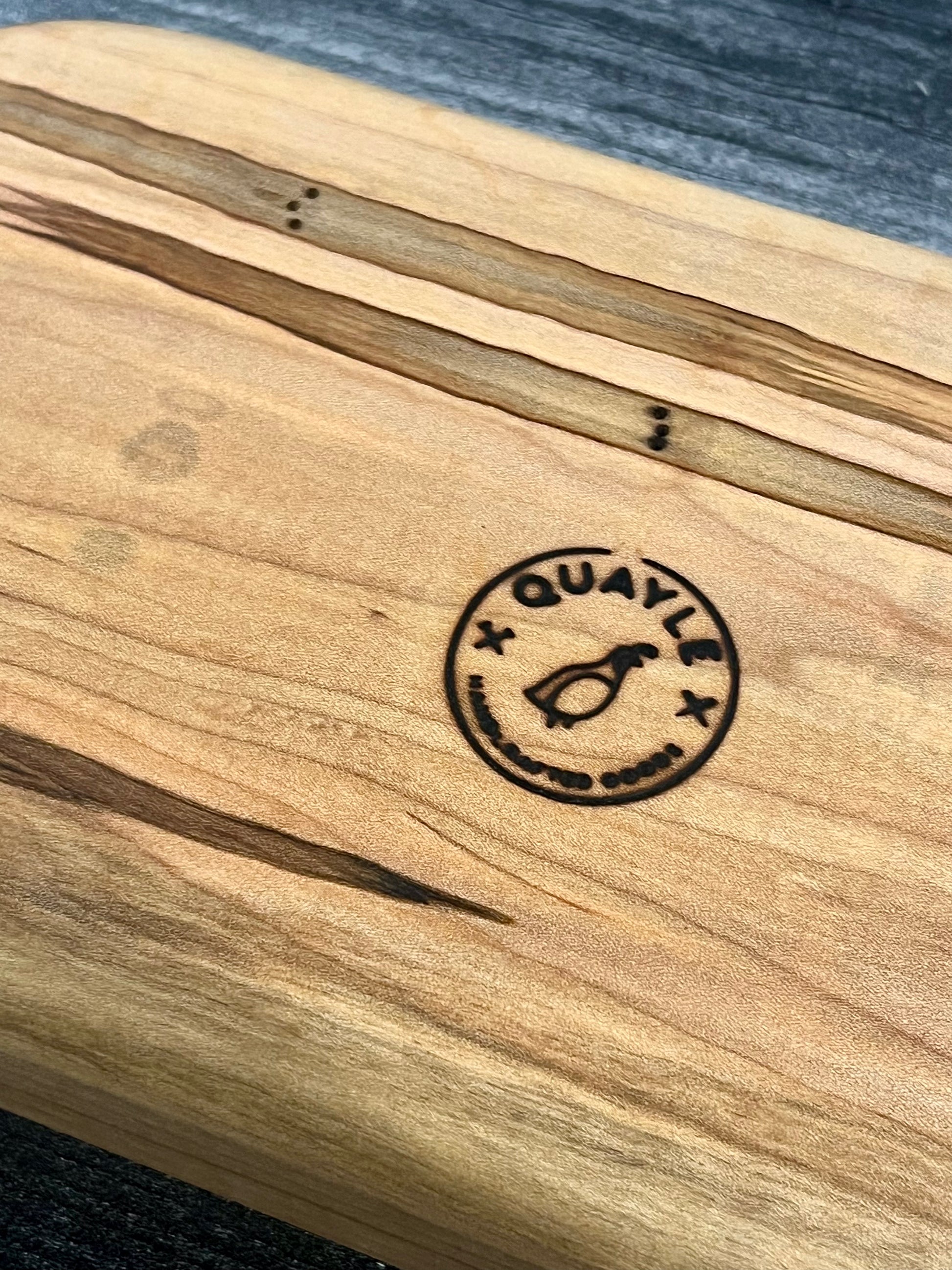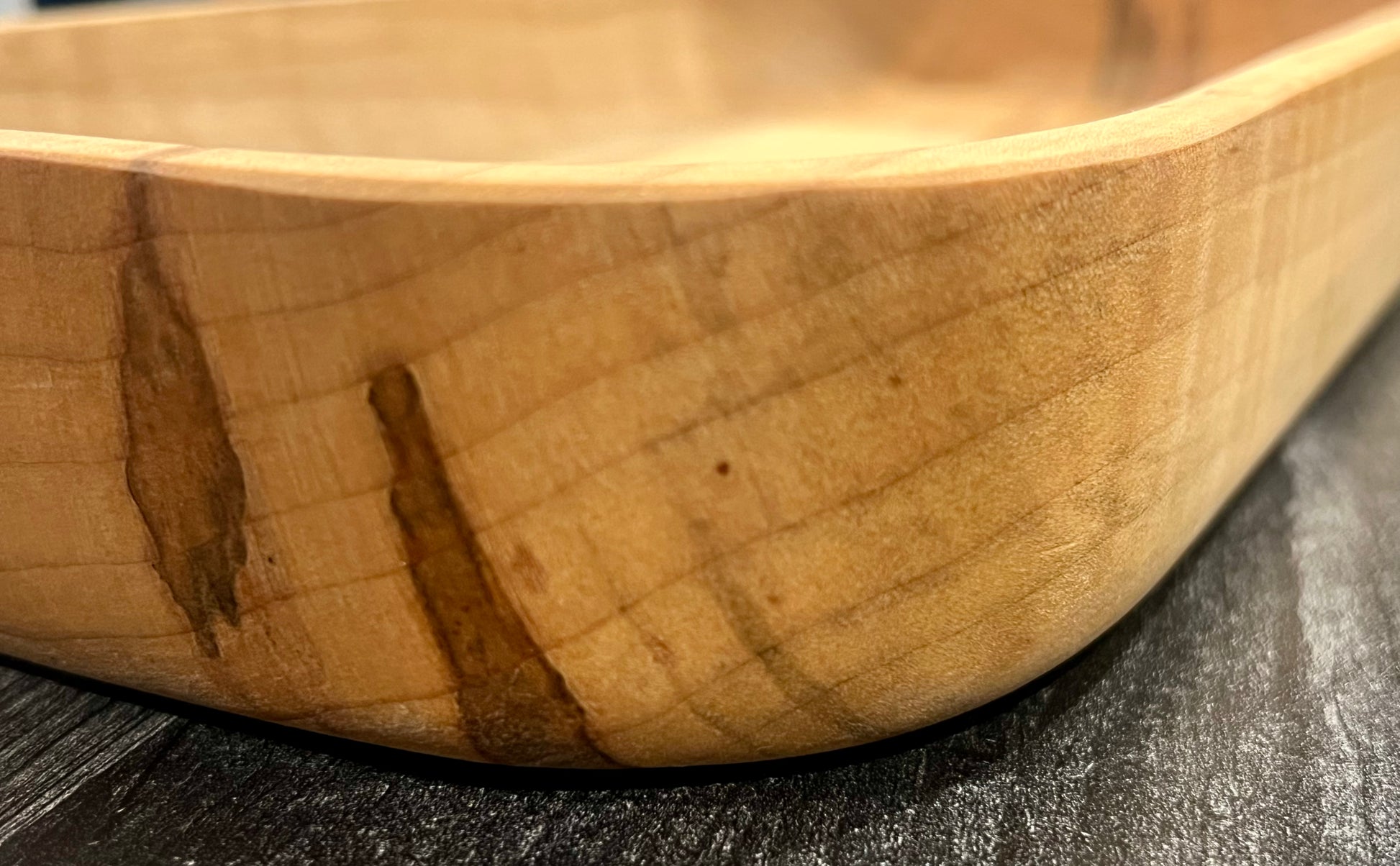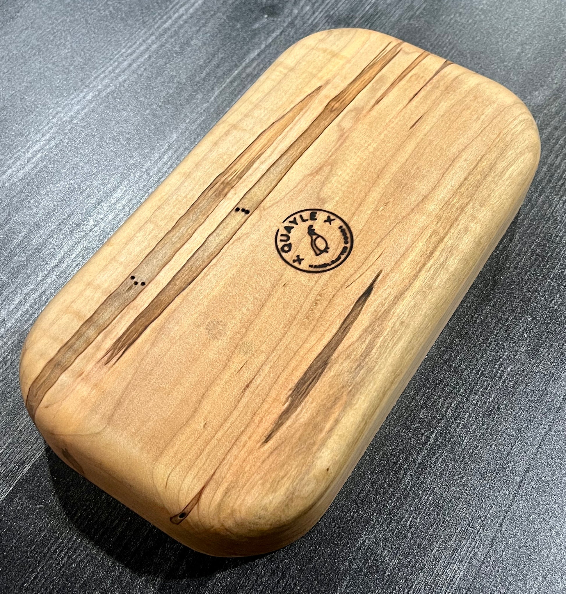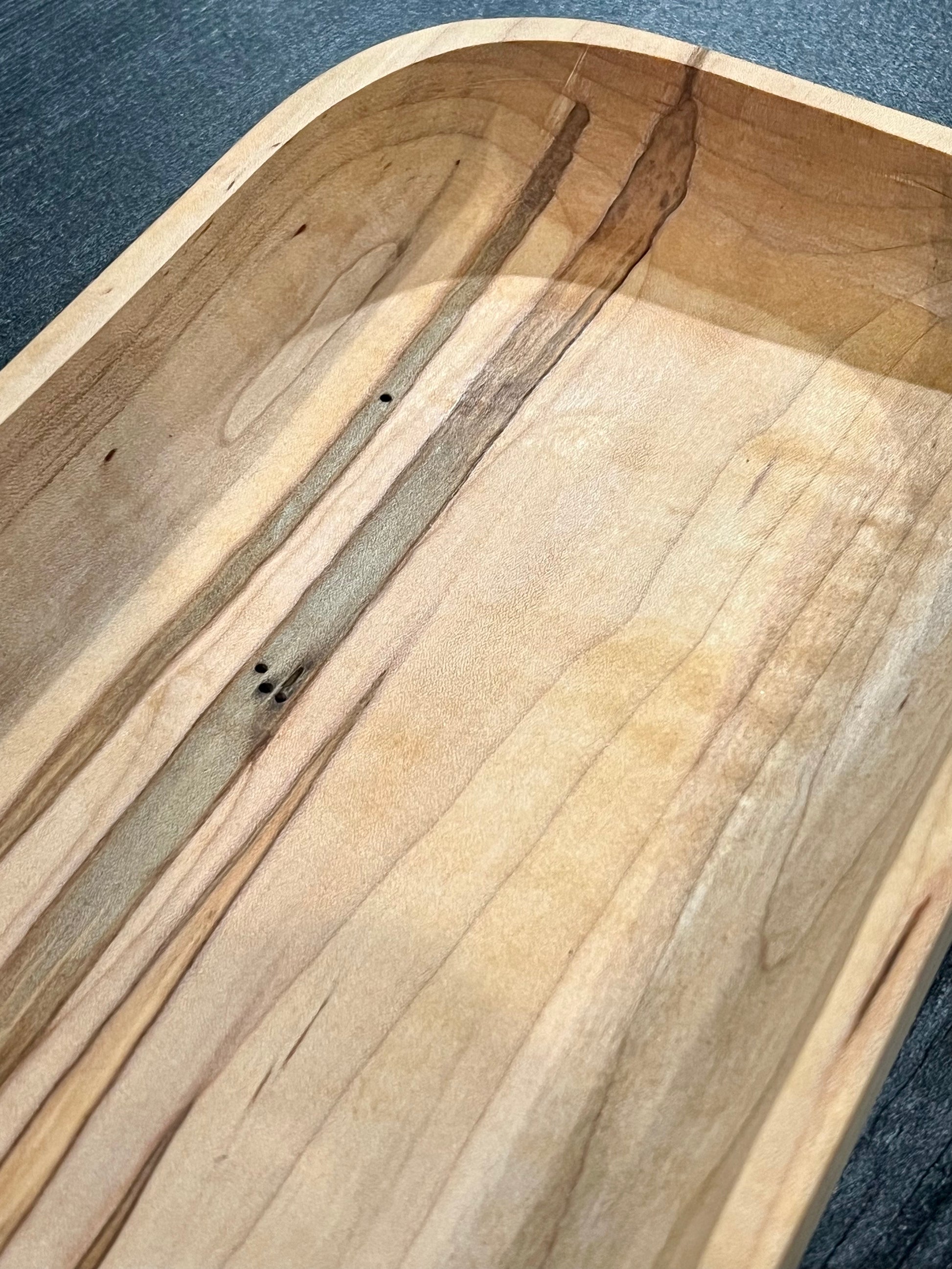 Crafted from ambrosia maple—maple wood naturally accented by subtle, organic streaks caused by ambrosia beetle activity—each tray features a one-of-a-kind pattern of grays, browns, and whispering contrasts across a pale maple base.