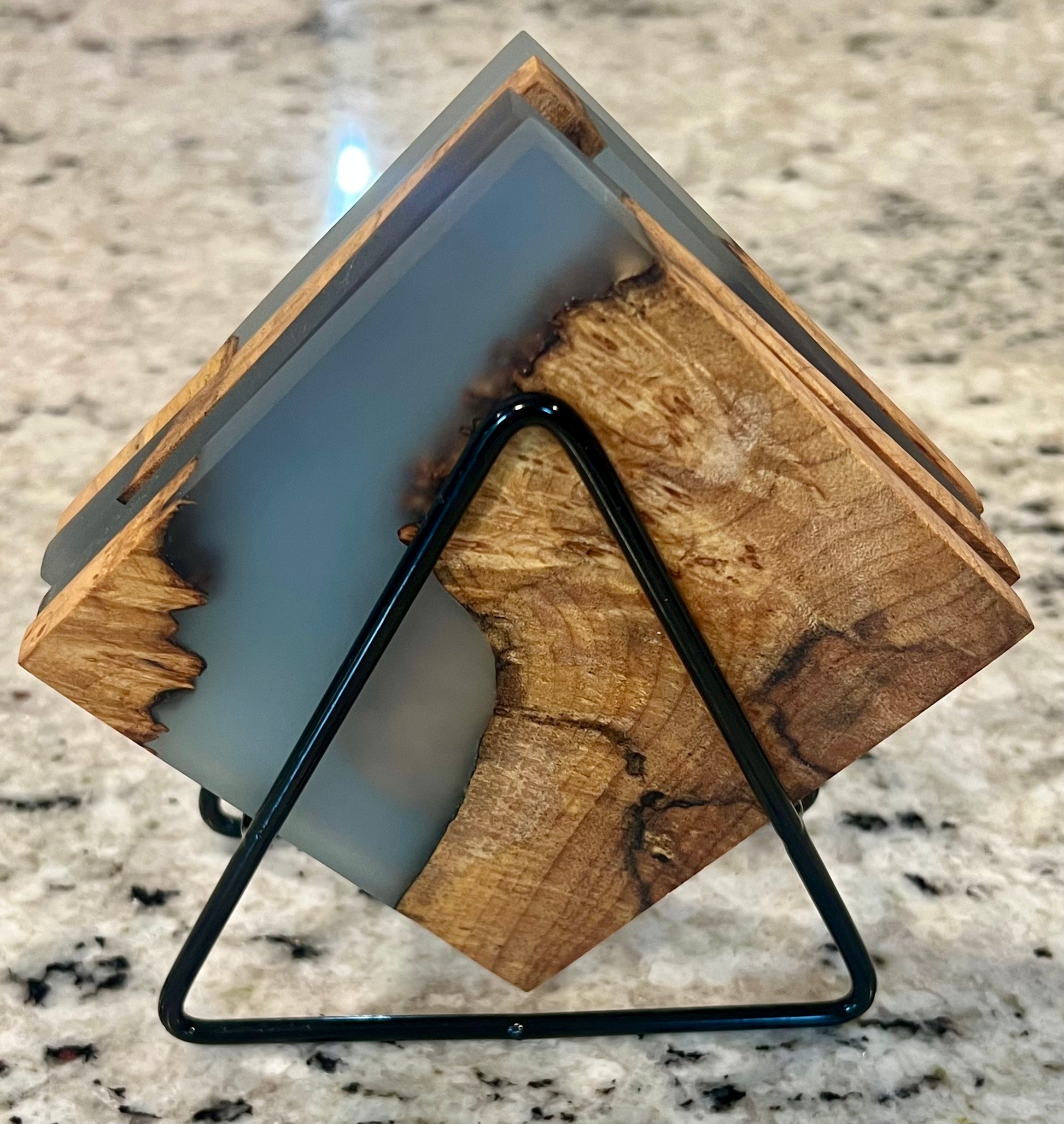 Sourced from burled maple wood, these coasters showcase wildly intricate, swirling grain patterns with “eyes” and knots that give each piece depth and character. Maple burl’s creamy tones contrast beautifully with the epoxy.
